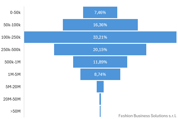 % Negozi moda Donna per fasce di fatturato annuale | 2025